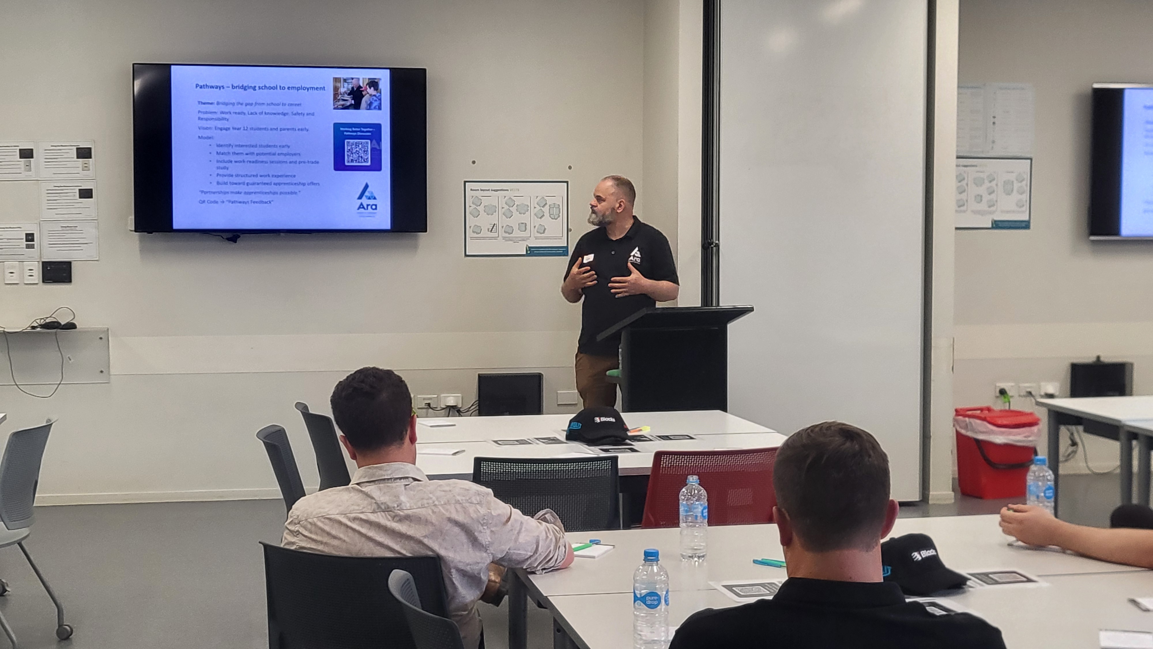 A key theme of the event was creating clear pathways from classroom to career. Ara’s presentation outlined a model that engages Year 12 students early, matches them with potential employers, and provides structured work experience alongside pre-trade study.